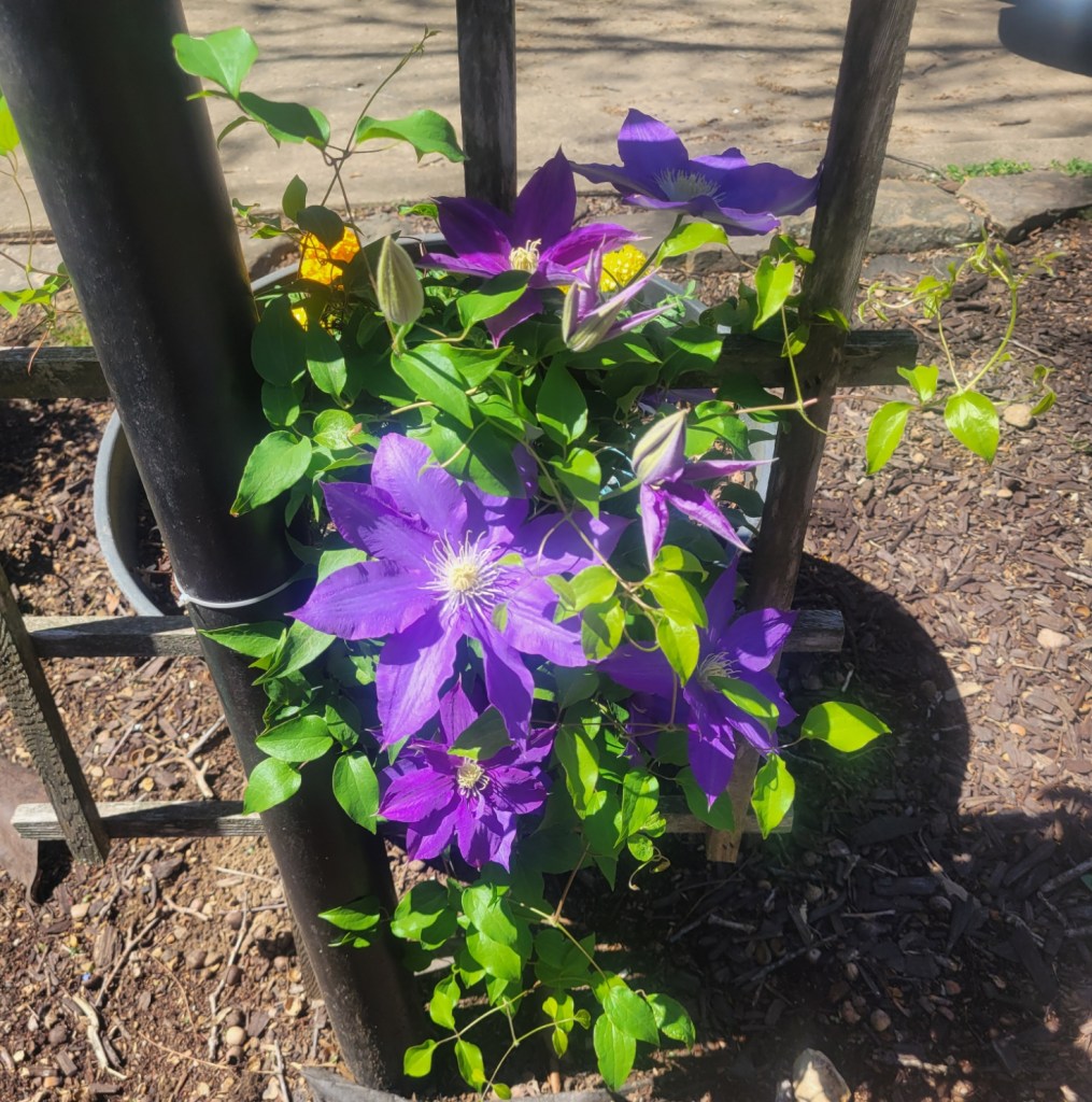 Now, as I pass by my beautifully growing Clematis, I am reminded of the power of hope, love, and physical action to restore beauty. Such profound synchronicity that the blossoms opened during Holy Week and Easter.